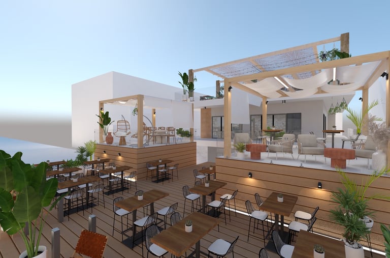 Roof Terraces on the Top Floor: 500 m² — ideal for a roof garden, dining/bar area, or infinity pool overlooking the sea.