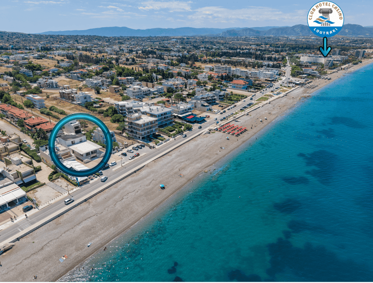 Steps from the Loutraki Casino, minutes from Ancient Corinth and Heraion, 1 hour from Athens Airport—perfect for both local and international clientele.